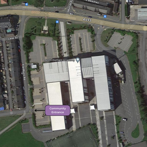 The address for our community entrance is Slaidburn Road, Stanley, DH9 0DF.